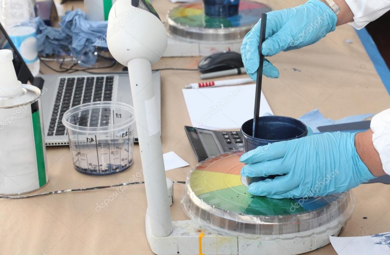 Перш ніж почати змішувати пропорції, колорист обов'язково переписує VIN-номер та код емалі. Технічна інформація допомагає йому знайти потрібний продукт у картотеці кольорів. Потім, шляхом додавання пігментів, тест-напилів і фарбувань, фахівець досягає максимально близького сходження підготовленої фарби з рідним кольором автомобіля.