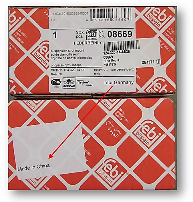 Концерн FERDINAND BILSTEIN JR, коротко FEBI, відомий багатьом автовласникам Східної та Західної Європи. Це найстаріший виробник запчастин, який масово підробляють у країнах Азії, зокрема у Китаї. Через це репутація виробника дуже постраждала. Автовласники в один голос стверджують: «Фебі вже не той». Але! якісні фабричні запчастини можна знайти. Головне вміти розбиратися в 2-х стикерах на упаковці: